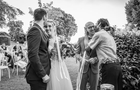 Durante il ricevimento e la festa, la Barchessa, l’ex scuderia di stalloni Lipizzani con annesso fienile, ha fatto da cornice ai sorrisi, alle risate e ai gesti spontanei che hanno animato ogni momento. Gli ampi saloni e gli spazi all’aperto, con scorci sui vigneti e sul parco della Villa Della Torre Valsassina, hanno reso ogni istante speciale, trasformando ogni fotografia in un ricordo indelebile.